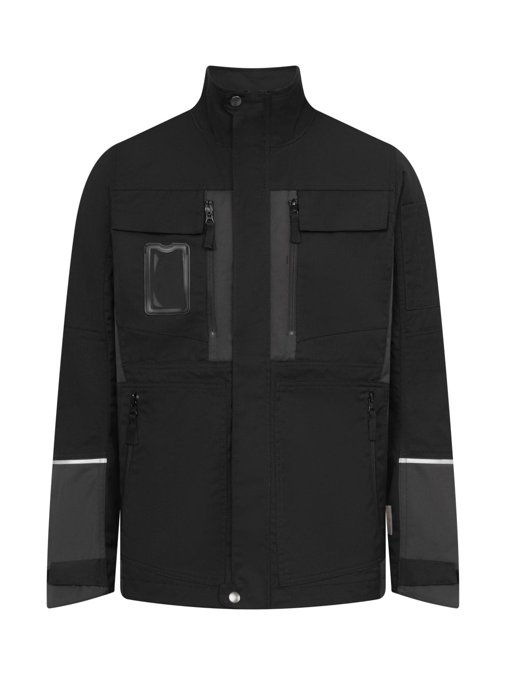 Miesten monikäyttöinen ja joustava Flexy-sarjan takki. Takin suunnittelussa on huomioitu eri tyyppiset liikeradat, minkä ansiosta työskentely on nyt entistä mukavampaa. Takissa on edessä läpälliset rintataskut ja vetoketjulla suljettava povitasku. Rintataskujen sivuilla on lisäksi vetoketjulla suljettavat taskut, joista vasemmassa on kuulokkeille läpivienti. Sisäpuolella on kuulokkeiden johdolle lenkki, jolla kuulokkeet saa kuljetettua hallitusti korviin. Kulkukorttitasku oikeassa rintataskussa. Alaosassa vetoketjulla suljettavat sivutaskut. Tarralla kiristettävät hihansuut ja vasemmassa hihassa kynätaskut. Neppareilla suljettava etulista. Hihoissa ja selän alaosassa heijastintereet. Takin selässä joustokappale ja pidennetty helma. Helmassa kiristysnyöri. Naisille löydät vastaavan mallin täältä