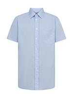 Siisti, tyköistuva kauluspaita lyhyillä hihoilla. Rintatasku vasemmalla puolella. Hieman joustava, puuvillasekoitteinen materiaali.