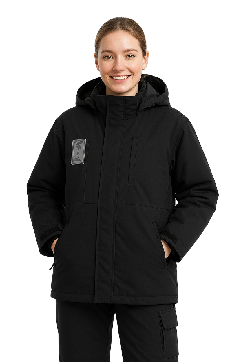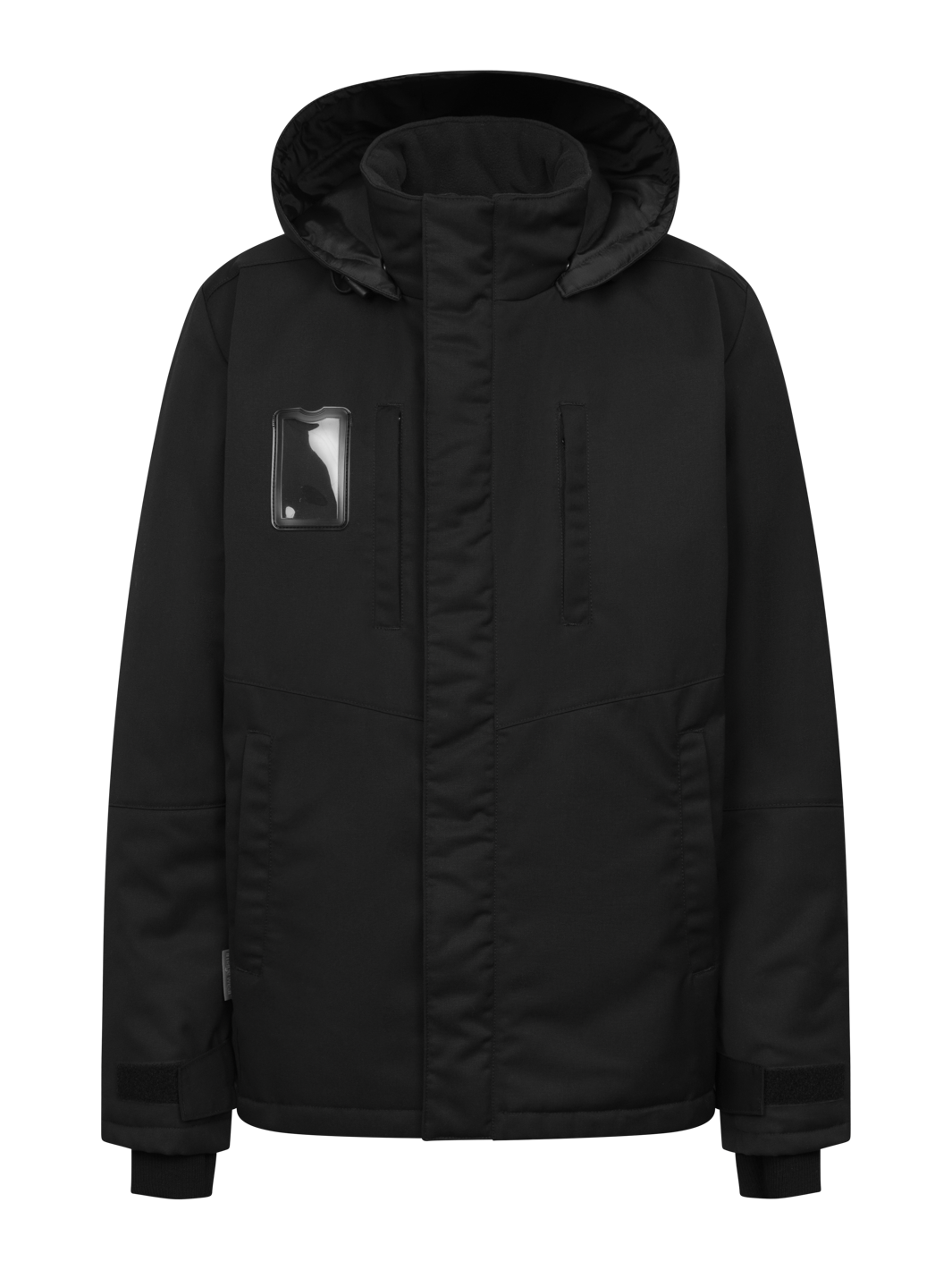 The Pyry winter jacket is a high-quality, stylish, versatile and warm winter jacket for, among other things, passenger transport, industry and logistics. The jacket has a 100 g laminated quilted lining, zippered chest and lower pockets, an ID card holder and chest pockets on both sides. There is a wind flap with snaps over the front zipper. The cuffs have comfortable and warming elastic and tightening tabs. The hem is longer at the back and the hem has an adjustable tightening. The jacket has a stand-up collar and a removable hood.