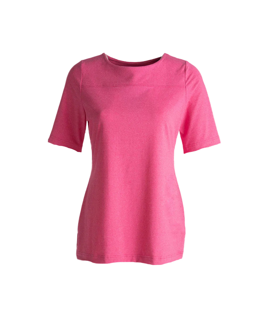 Short-sleeved t-shirt for women. Flexible and high-quality cotton-elastane material. The material withstands repeated washing. V neckline. The shirt keeps its shape and does not pile easily. High-quality t-shirt for work and leisure.