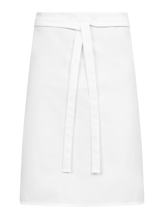 Chef's knee-length apron with ribbon fastening. Apron length 60 cm, width 88 cm. You find more apron choices from here.
