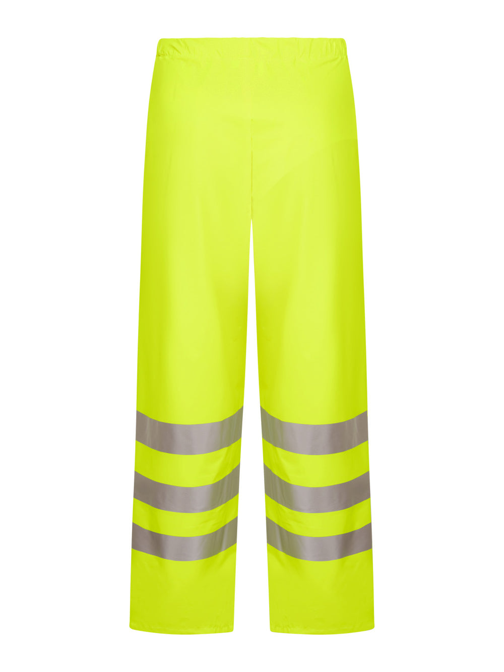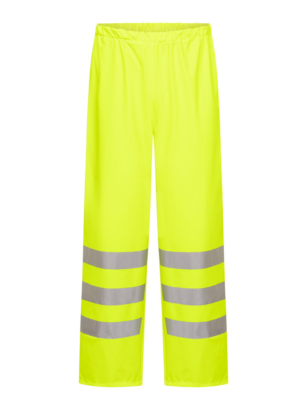 High-visibility rain trousers and high-visibility rubber boots will complete the work outfit on a rainy day.