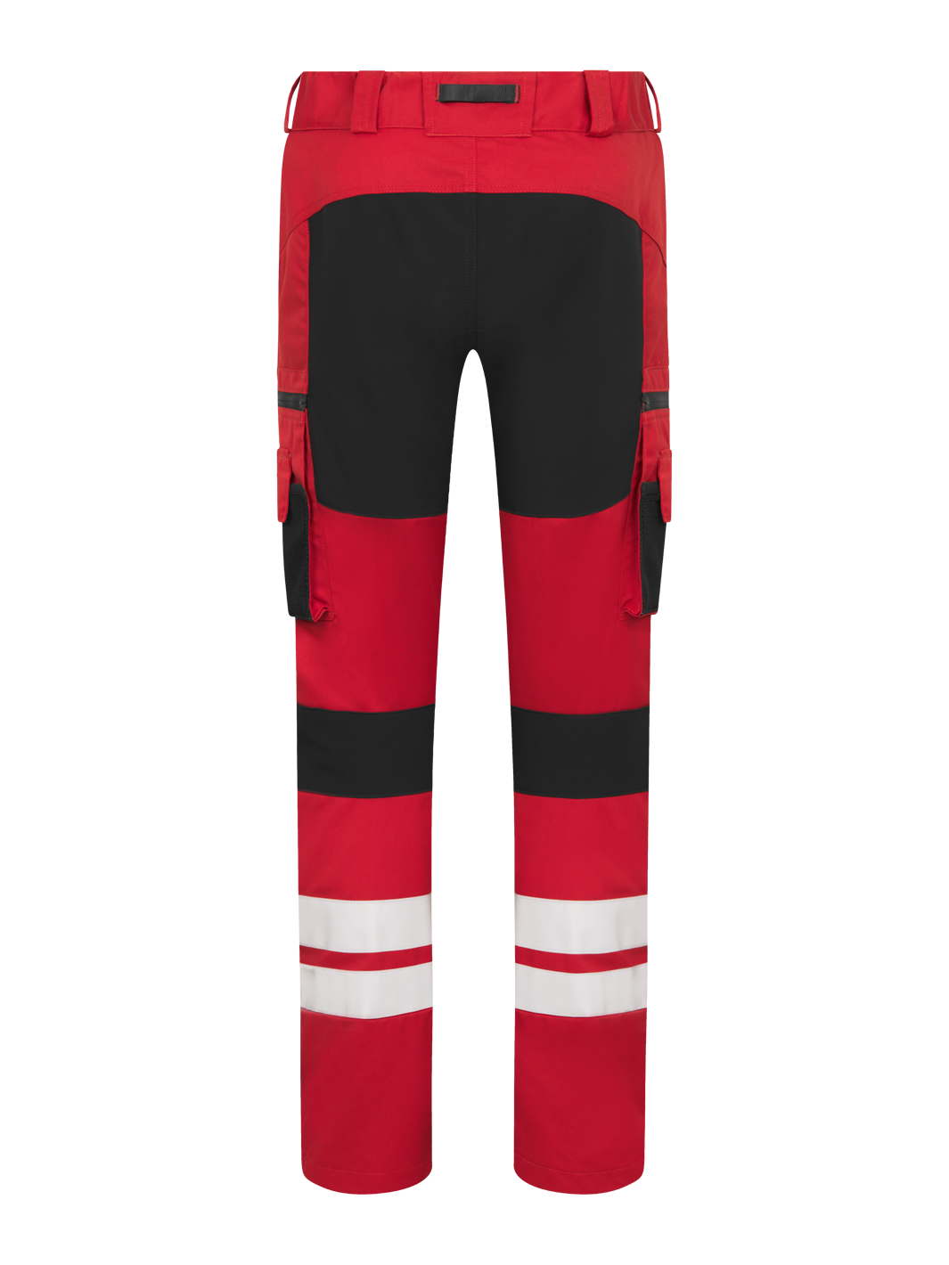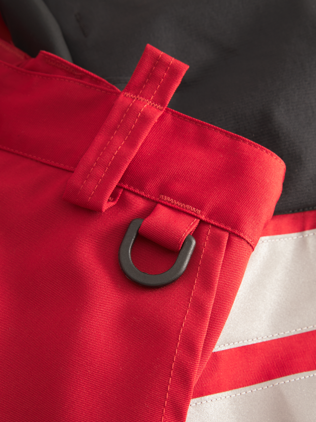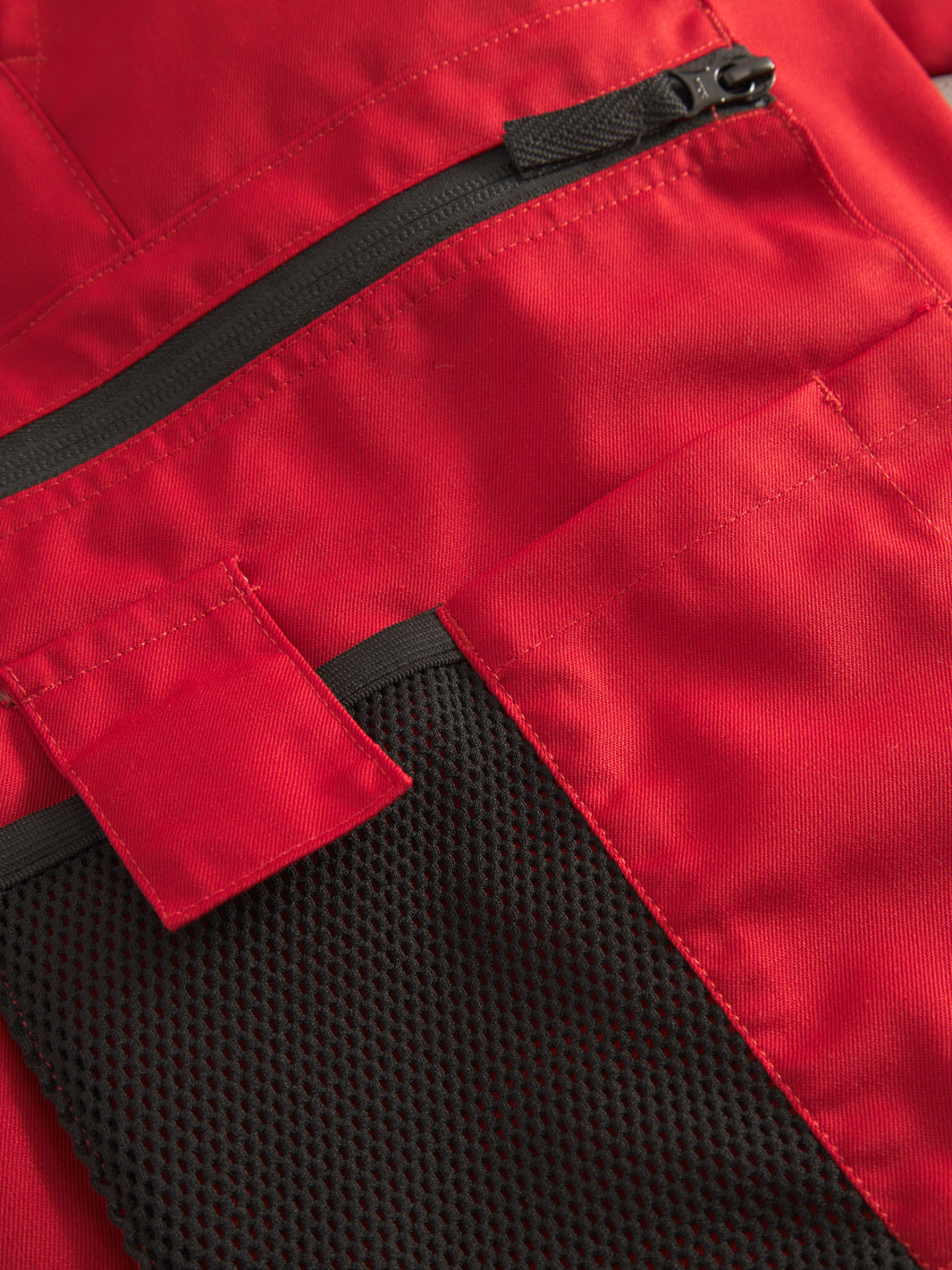 The Jesse elastic work trousers from the Lanssi collection have elastic parts at the back, crotch and knees, and the waistband is also elastic. There are four belt loops at the front and back, and a wider belt loop at the center back. The trousers have D-loops at the front. The trousers have side pockets.