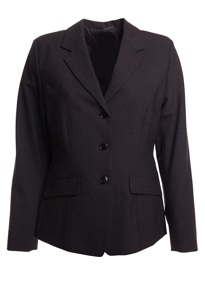 Kauniisti istuva klassisen mallinen naisten jakku/bleiseri kahdella alataskulla. Suljetaan kolmella napilla. Muotolaskokset. Sisäpuolella sileäpintainen vuori ja olkapäillä kevyet toppaukset. Materiaali on helppohoitoista ja kestävää villasekoitetta. Saatavilla kolmessa eri värissä. Helppo yhdistellä erilaisiin alaosiin esim. naisten suoriin housuihin.