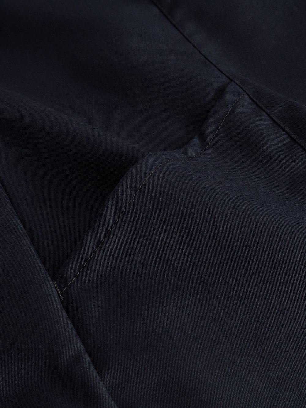 Yksityiskohtakuva tummansinisen neppariliivin taskun suusta.