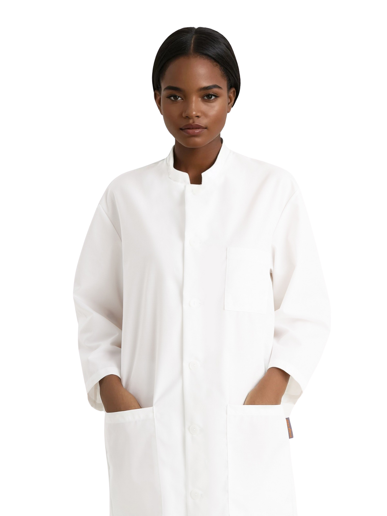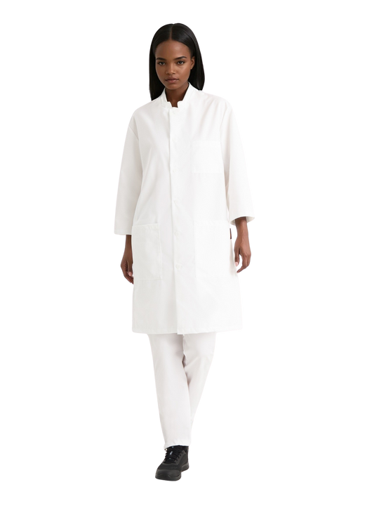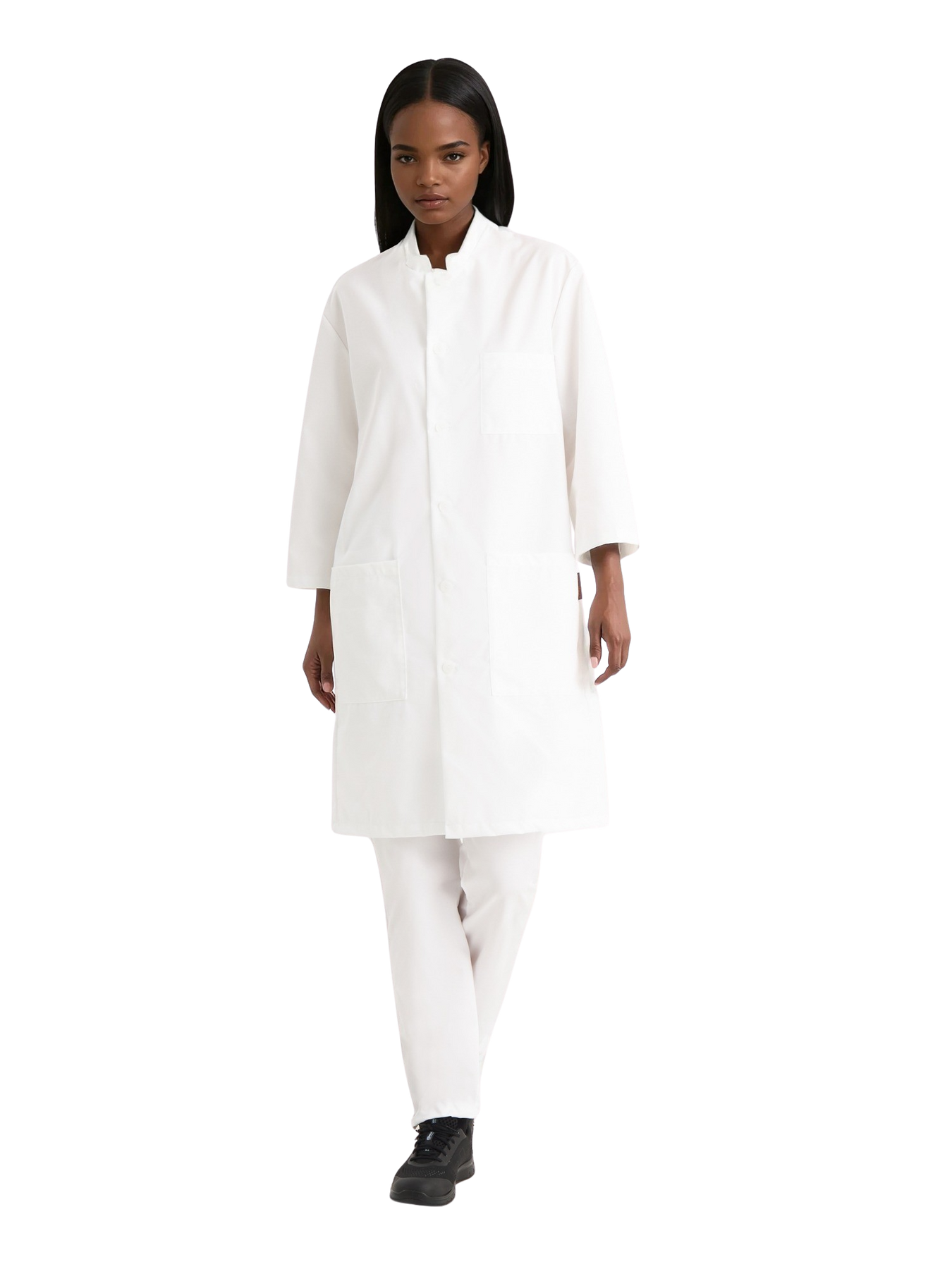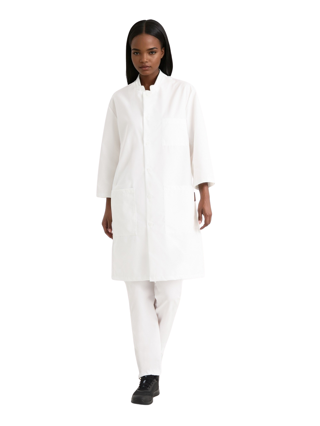 Lääkärintakki, joka nostaa työskentelymukavuuden aivan uudelle tasolle. Unisex malli miehille ja naisille. Hihan pituus 3/4-mittainen kyynärpään alapuolelle. Edessä nappikiinnitys. Pystykaulus. Tilavat alataskut ja avoin rintatasku kynätaskulla. Hihoissa muotolaskokset. Takana halkio. Pesulapesun kestävä. Toimii myös laboratorio-/ labratakkina. Takkiin löytyy pariksi mukavat unisex housut valkoisena. Löydät kaikki lääkärintakki mallit täältä.